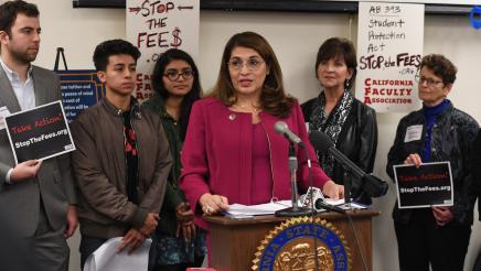 California State Assemblywoman Sharon Quirk-Silva and leaders of the California Faculty Association (CFA) held a press conference to address students and faculty on the campus of Sacramento State University to announce a new bill that will place a moratorium on student tuition and fees at California’s public community colleges and state universities.